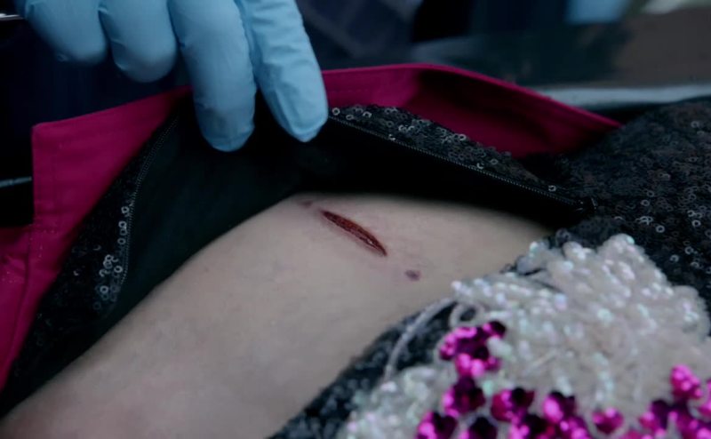 But "stabbed" implies the blade was thrust into the victim,