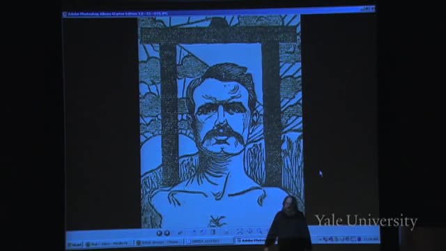Look, here his head is framed by the guillotine.
