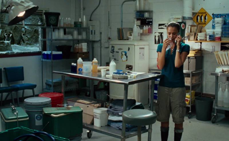 got tackled by a penguin, and fell face-first into a fake ice boulder.