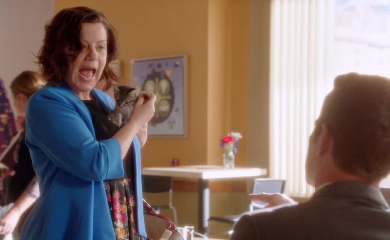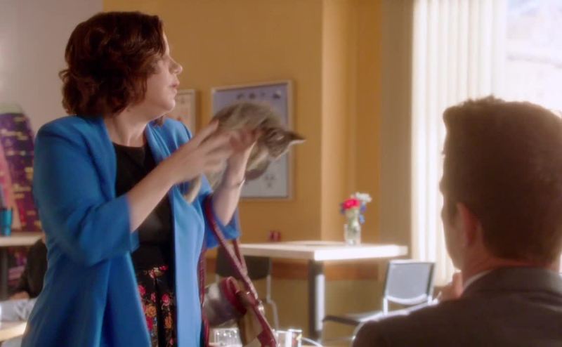 Just let me feed her. Here. Hold her for a second.
