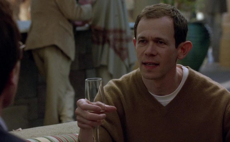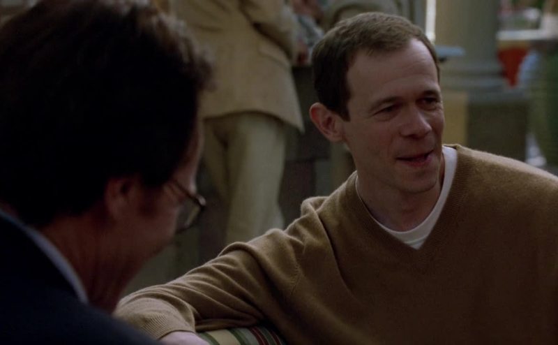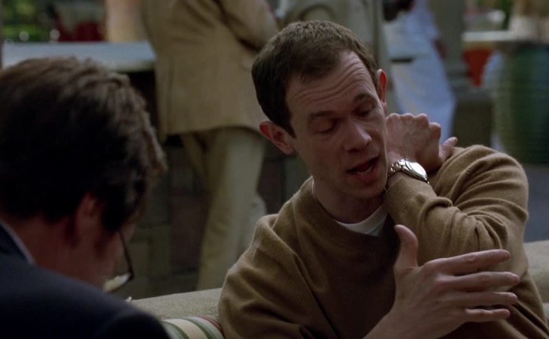 Onto the elbows of his members only jacket because