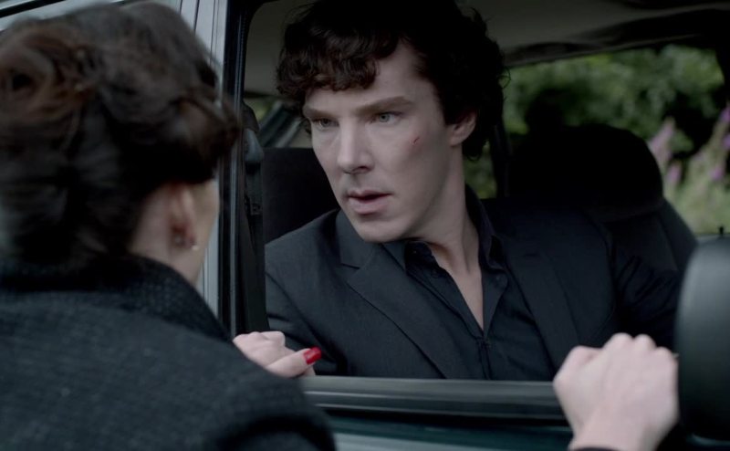 So, the car's about to backfire and the hiker,