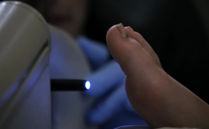 probably playing sports. Shin splits on the right leg
