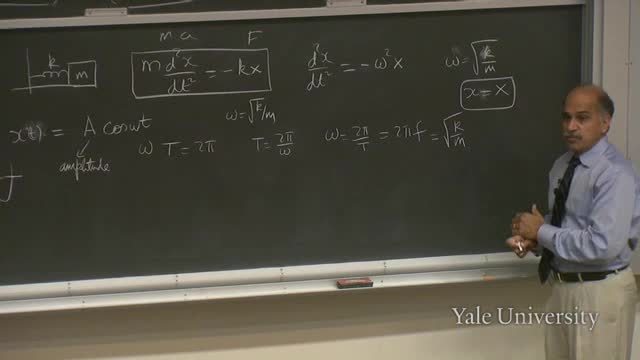 which is connected to the force constant and the mass.