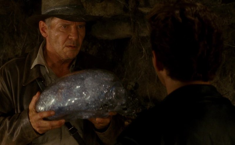 finds the skull.Takes it away,