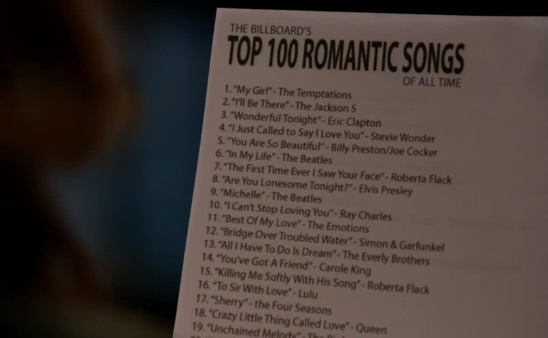 "The billboard's top 100 most romantic songs of all time."