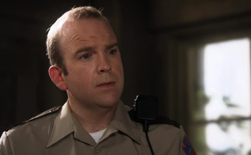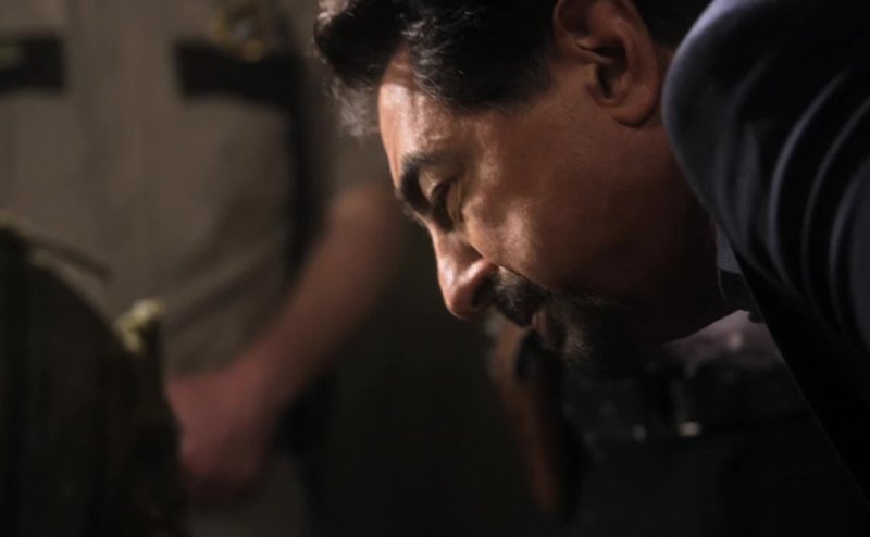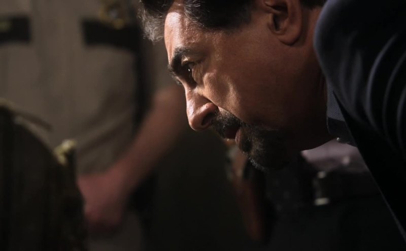 Of a man who's covered in tattoos drawn by a woman from the future.