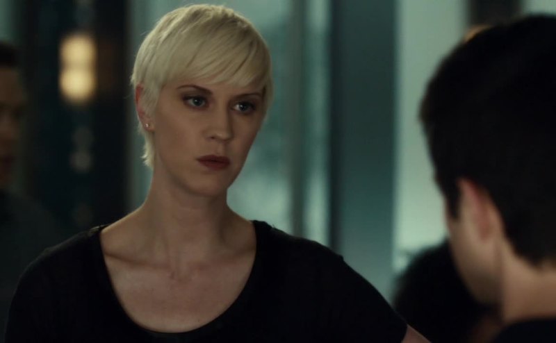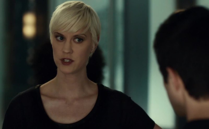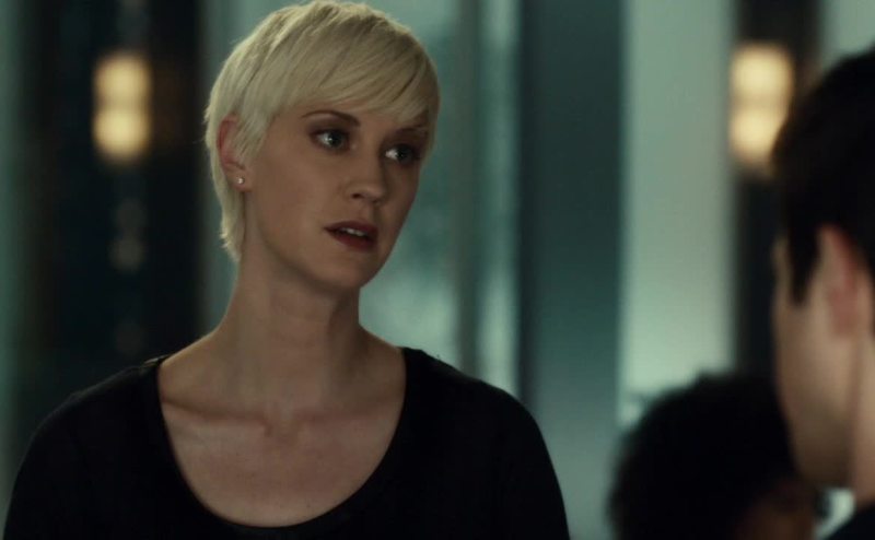 She pretends to be terrified when Roth threatens her.