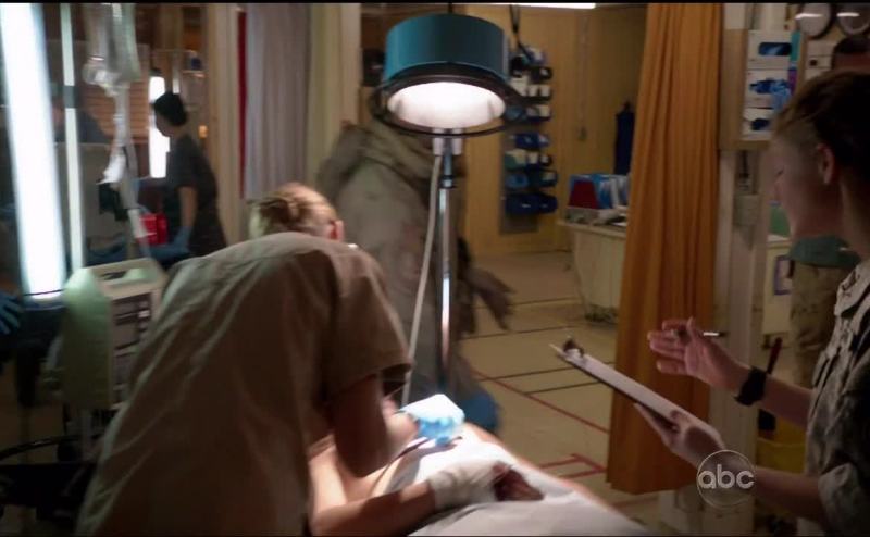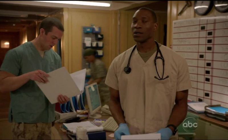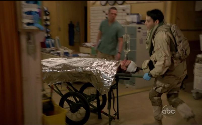 Captain, shrapnel to the face and arms.