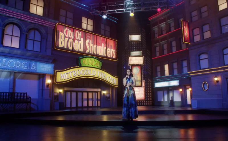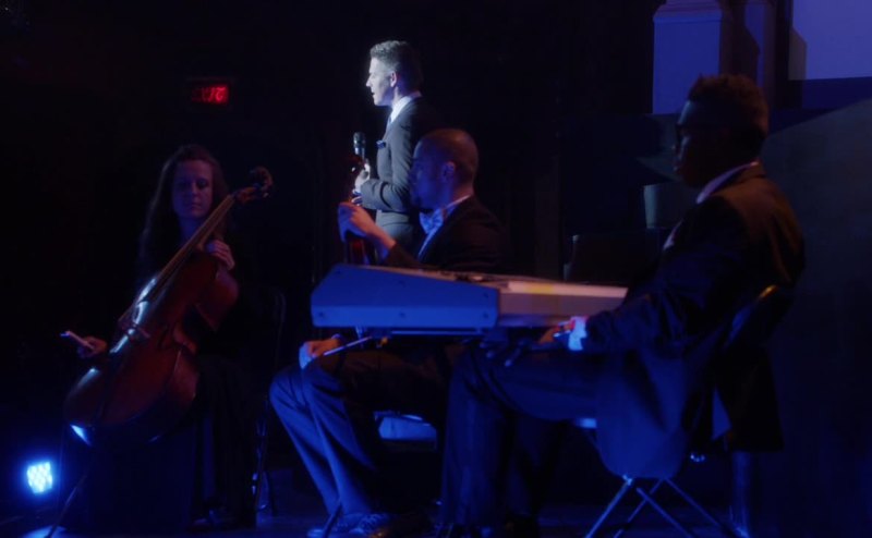 Singing the winning original song,