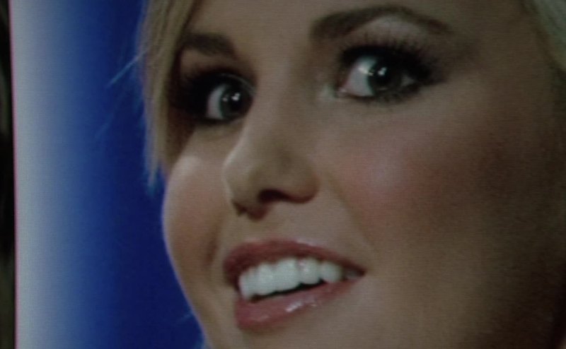 She's smiling but her eyes say she's afraid.