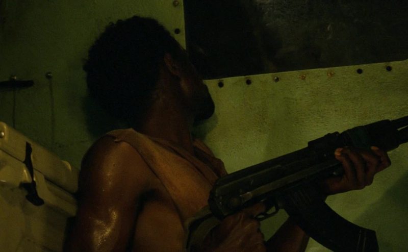 One suspected pirate onboard in the starboard hangar.