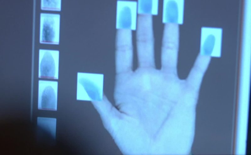 I have to input your palm print through the hand scanner.