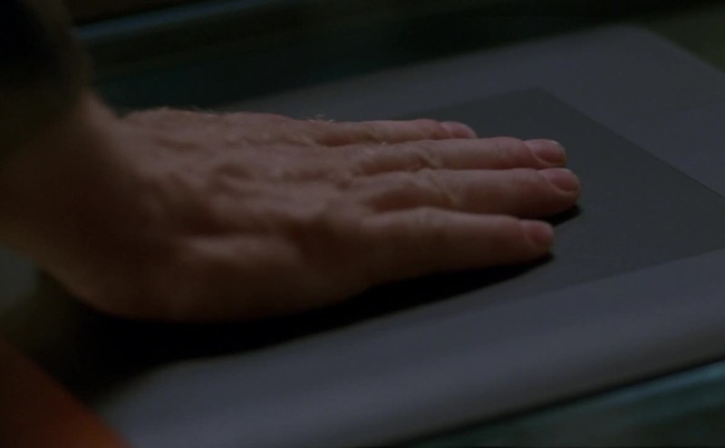 I have to input your palm print through the hand scanner.