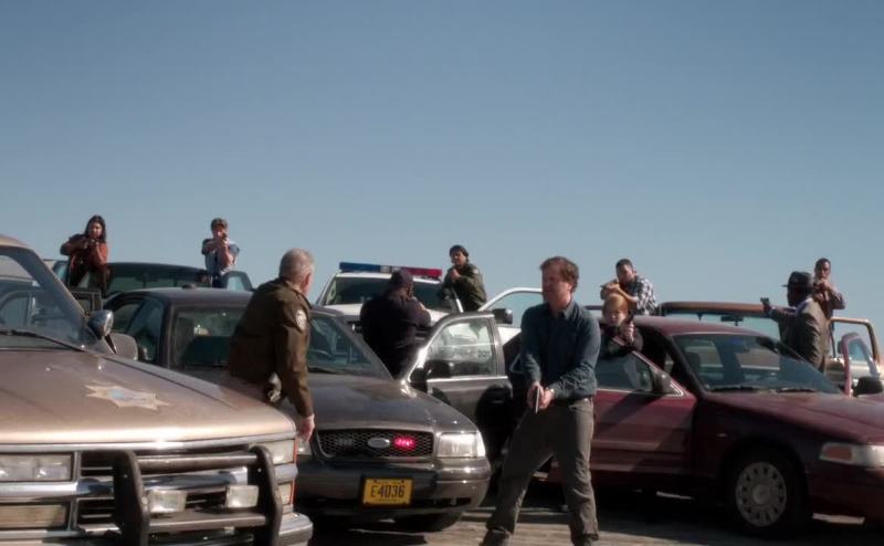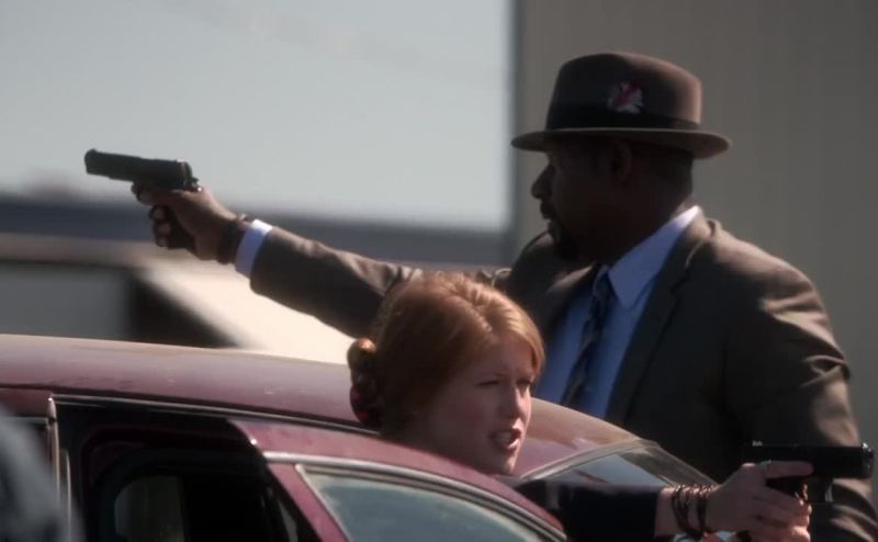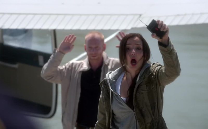 - Lower your gun now! - She's got a bomb!
