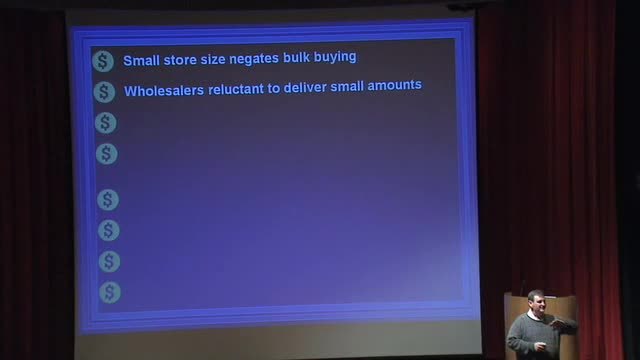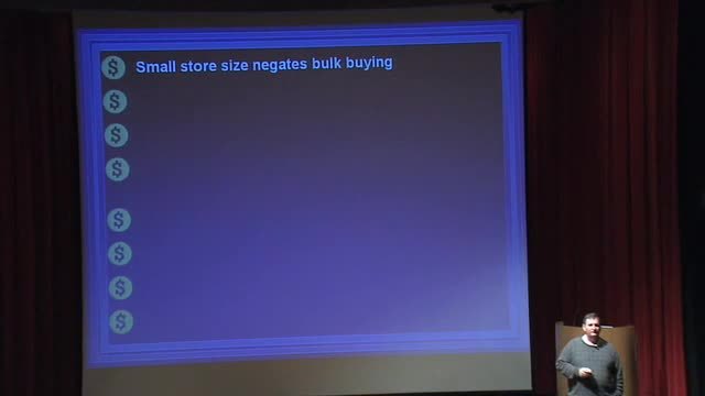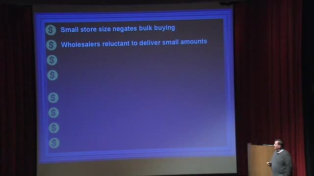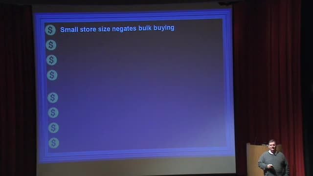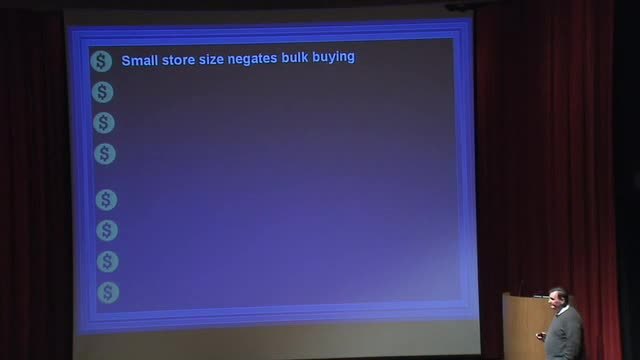 First, small stores can't buy in bulk,
