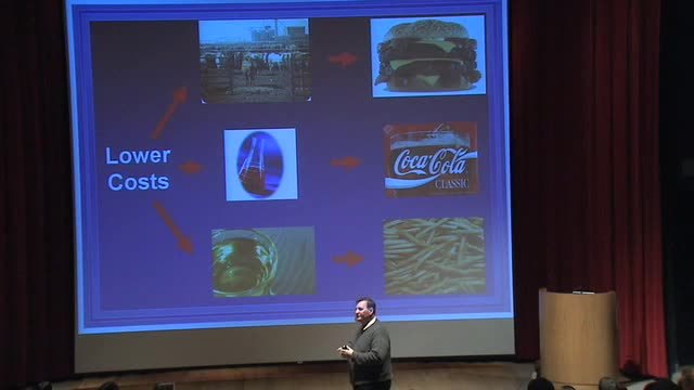 One is it becomes inexpensive to feed a cow or a chicken, or a pig,