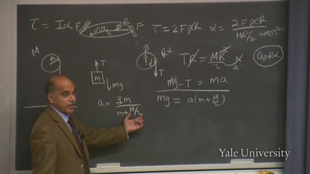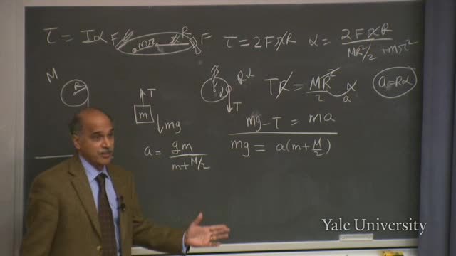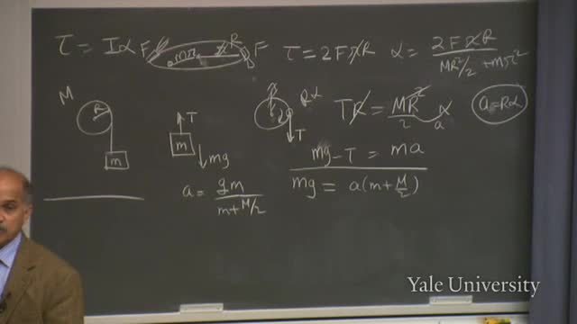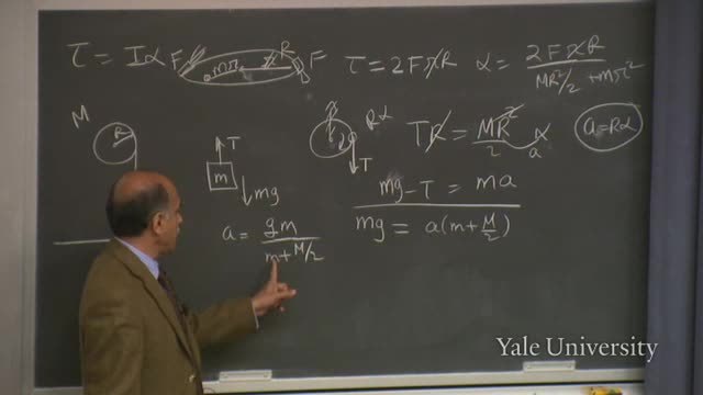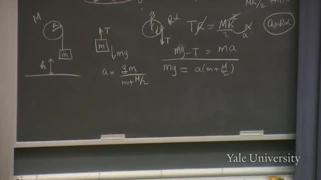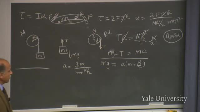 First, if the pulley is massless, M vanishes;