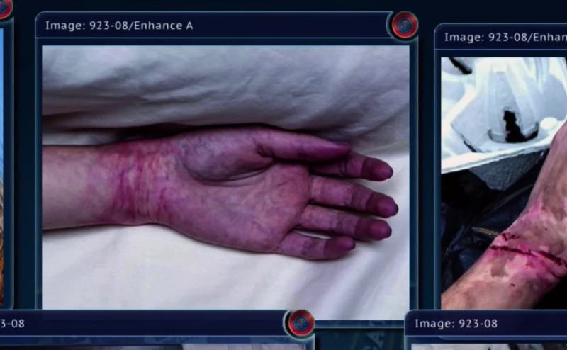 There's also a gunshot wound to the back of her head,