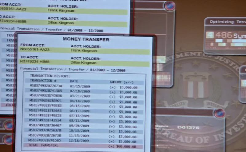 Mm-hmm. From one secret account to another. 5 grand a month.