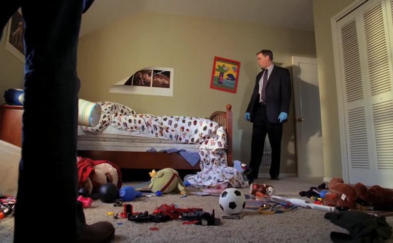 Kyle's sheet and blanket were pulled apart and off the bed.