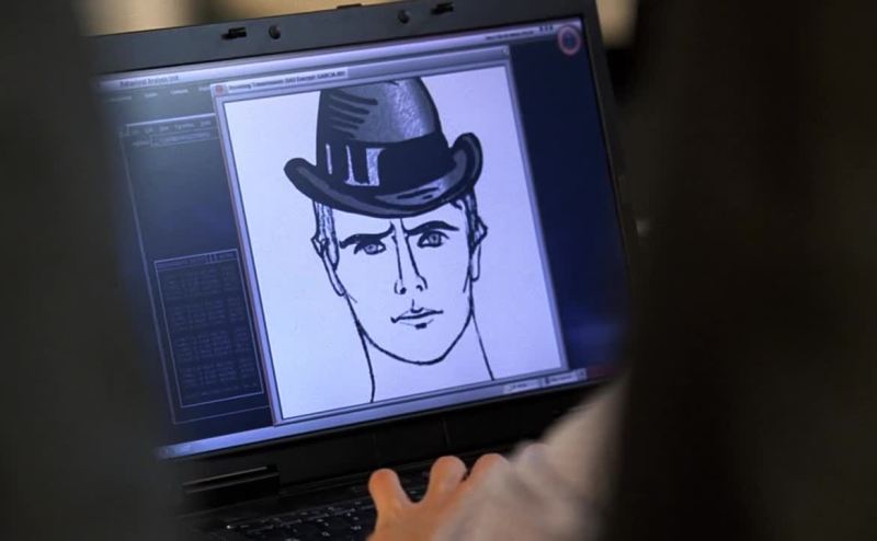 a fedora and colored contacts, sunglasses, each time obscuring...
