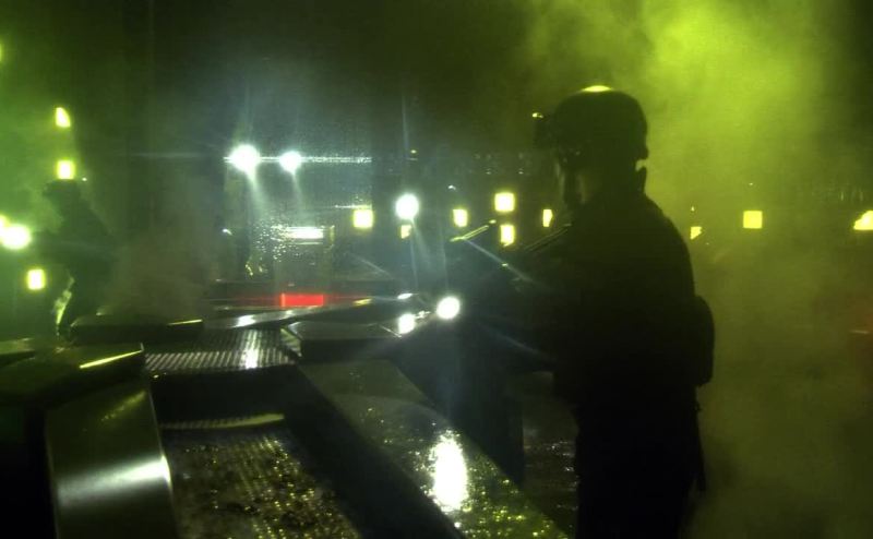 MATHIAS: Three fire teams, each doorway. Go!