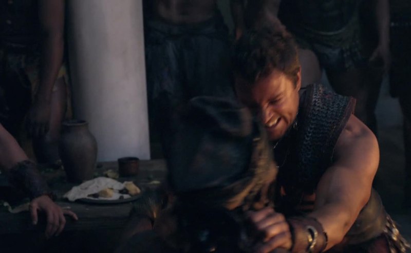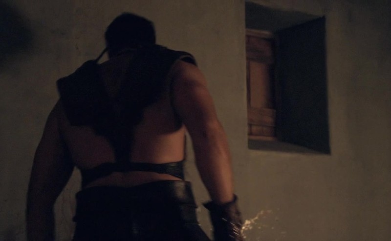 Spartacus stands displeased with celebration's end.