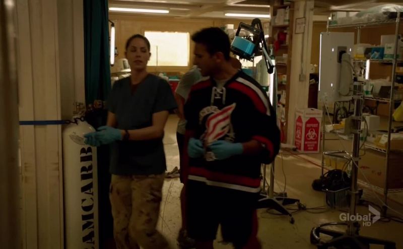 Loss of blood, needs O-2, IVs,