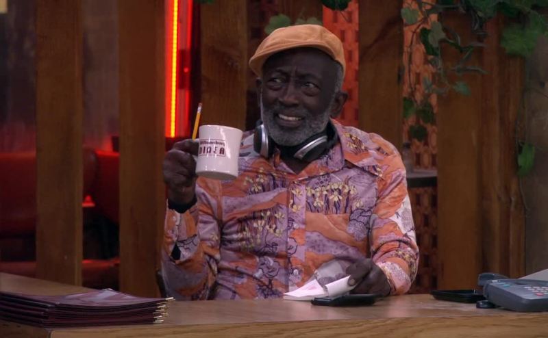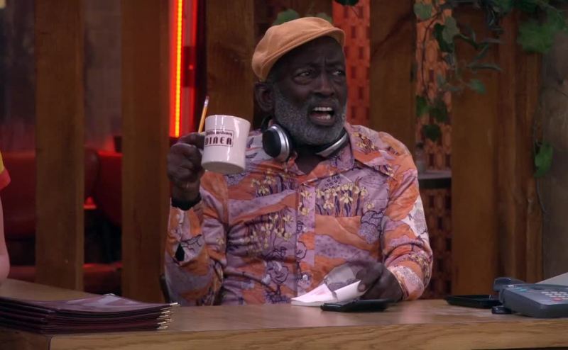 He's here? I'll go get him a kid's menu.