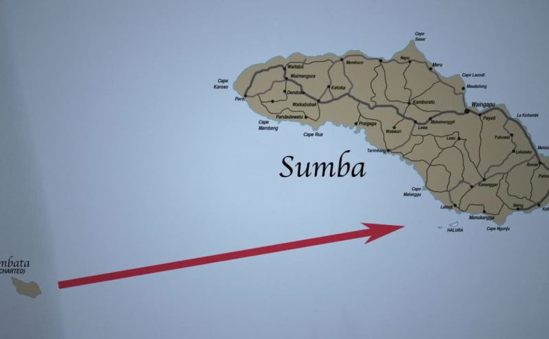 Used this raft to journey here-- an island called sumba.