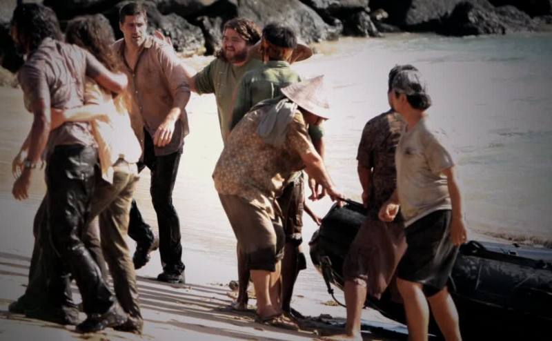 Here. from there, the survivors were carried by the ocean's current to...