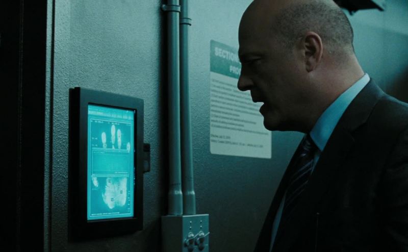 Confirming biometric pattern of Minuteman Ethan Shaw.