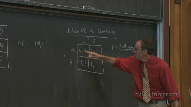 we know in this game that β is dominated, is strictly dominated by α.