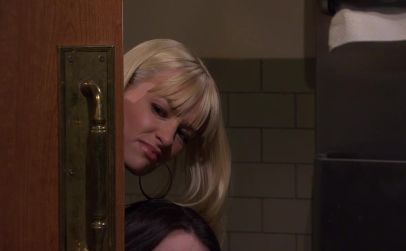Why is he going to the bathroom with that stranger?