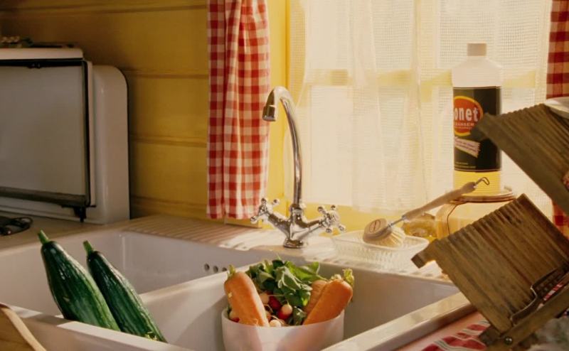 in the kitchen peeling and washing vegetables for lunch.