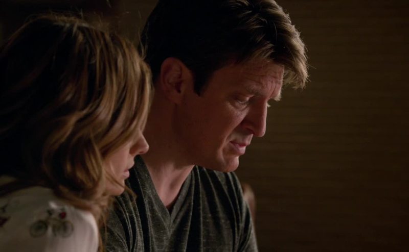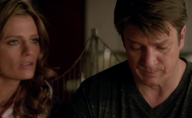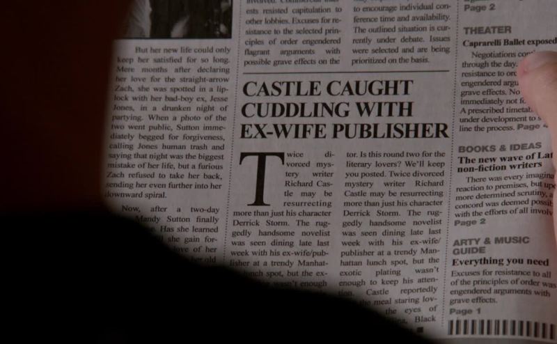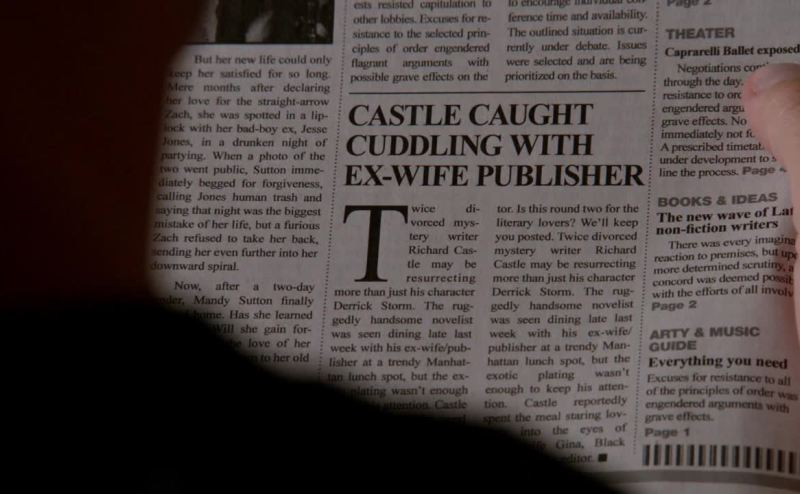 "Castle caught cuddling with ex-wife publisher."