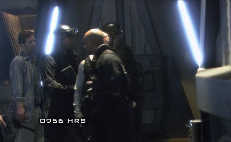 Civilians are trying to barricade the aft supply hold.