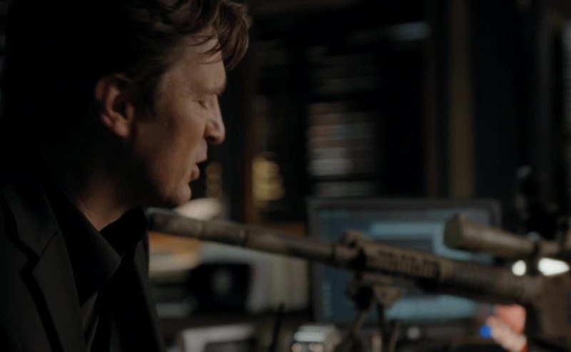a groundskeeper taking cover from the shooter behind a tree.