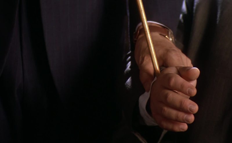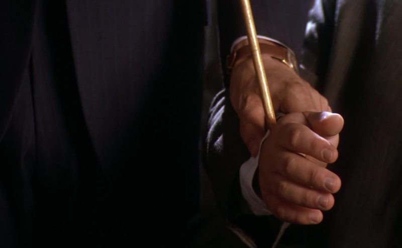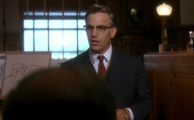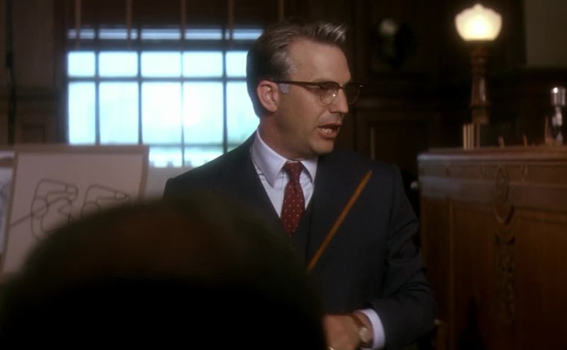 makes a dramatic U-turn, then buries itself in Connally's left thigh.