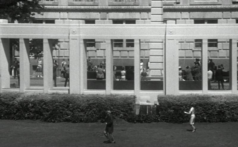 Kennedy's motorcade makes a turn from Main onto Houston.