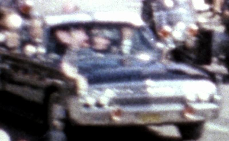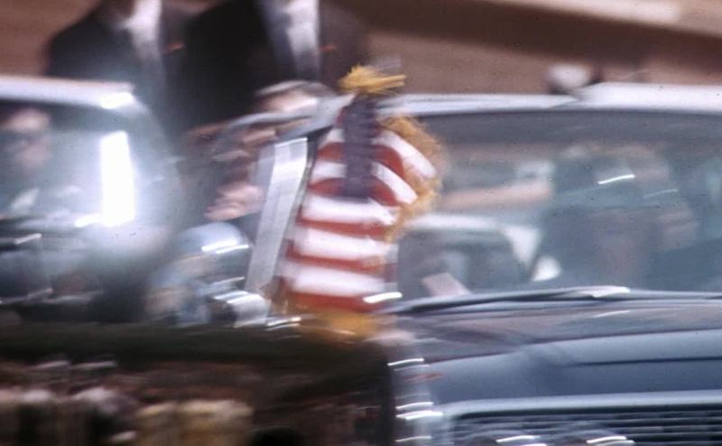 Frame 161, Kennedy stops waving as he hears something.