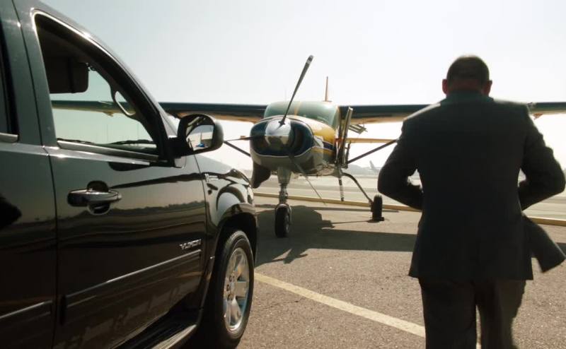 He's on his way out of town for a business trip.