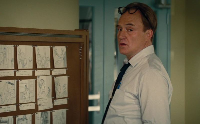 She goes up the banisters.