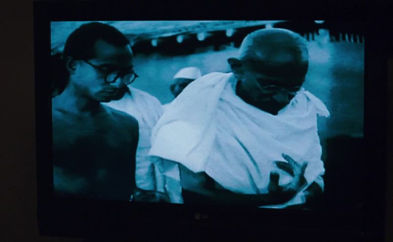 As always Gandhi wore only white linen cloth,