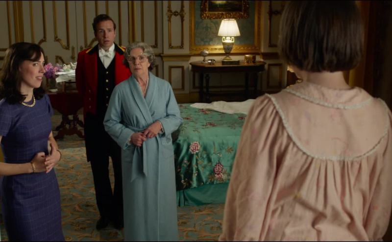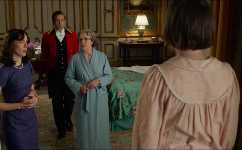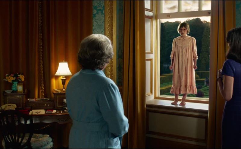 There's a small girl standing on the window sill.