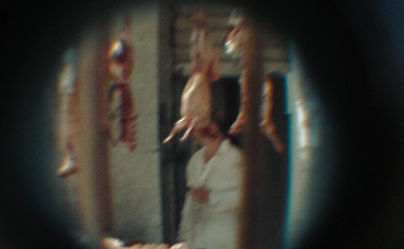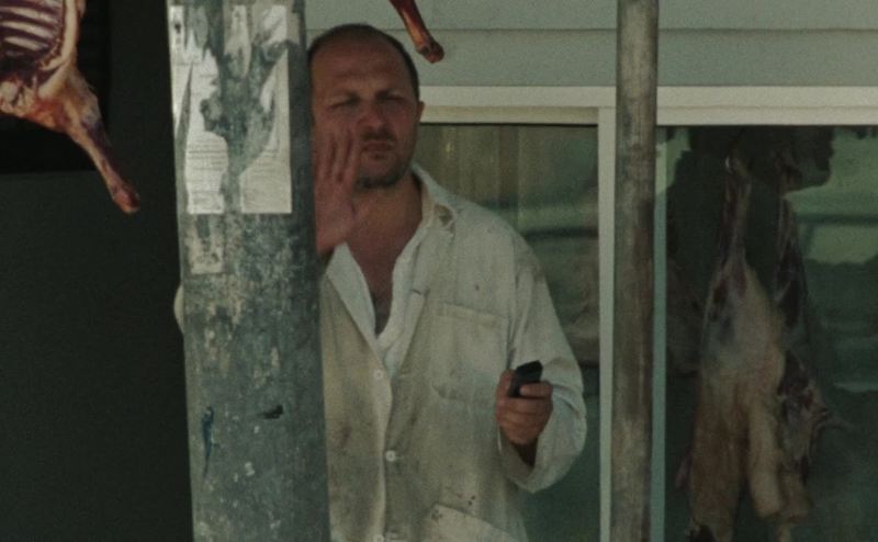Butcher shop, 2:00! Dude has a phone!