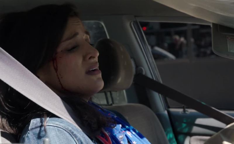 Driver's losing a lot of blood.