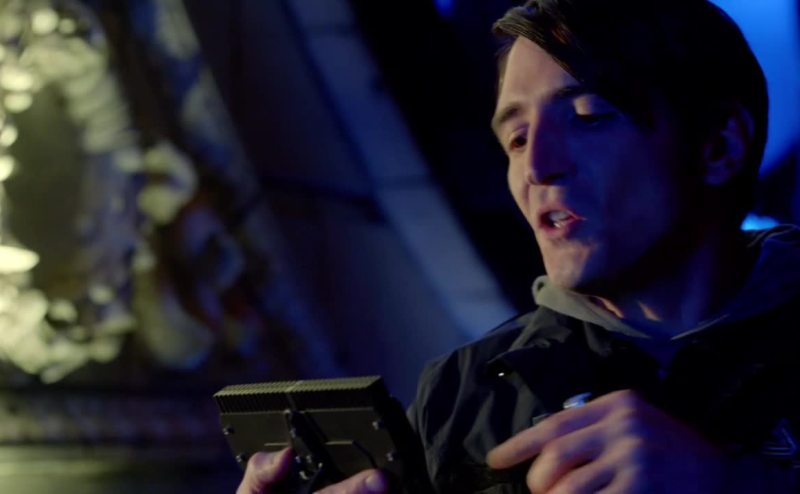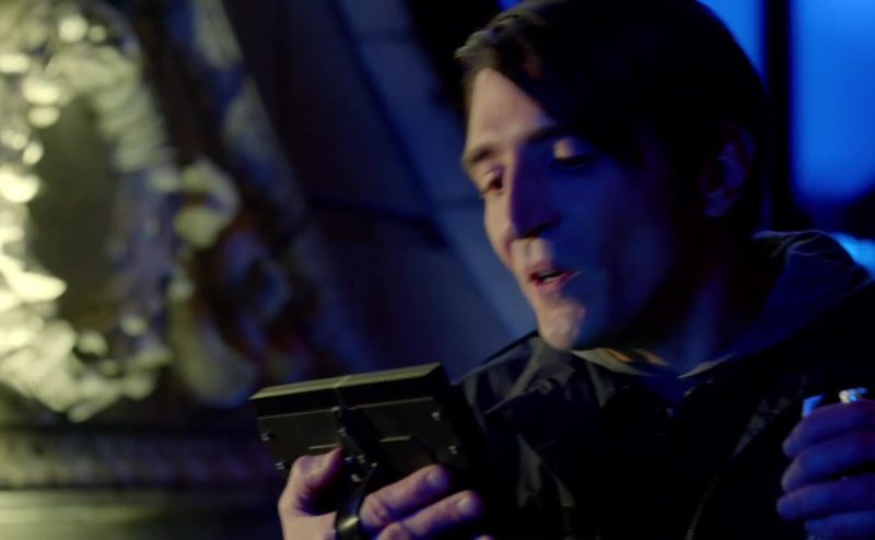 He's holding something.