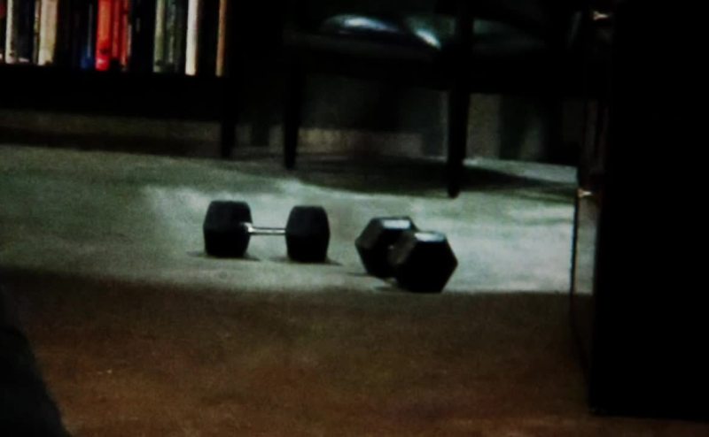 on the floor. Guy works out.